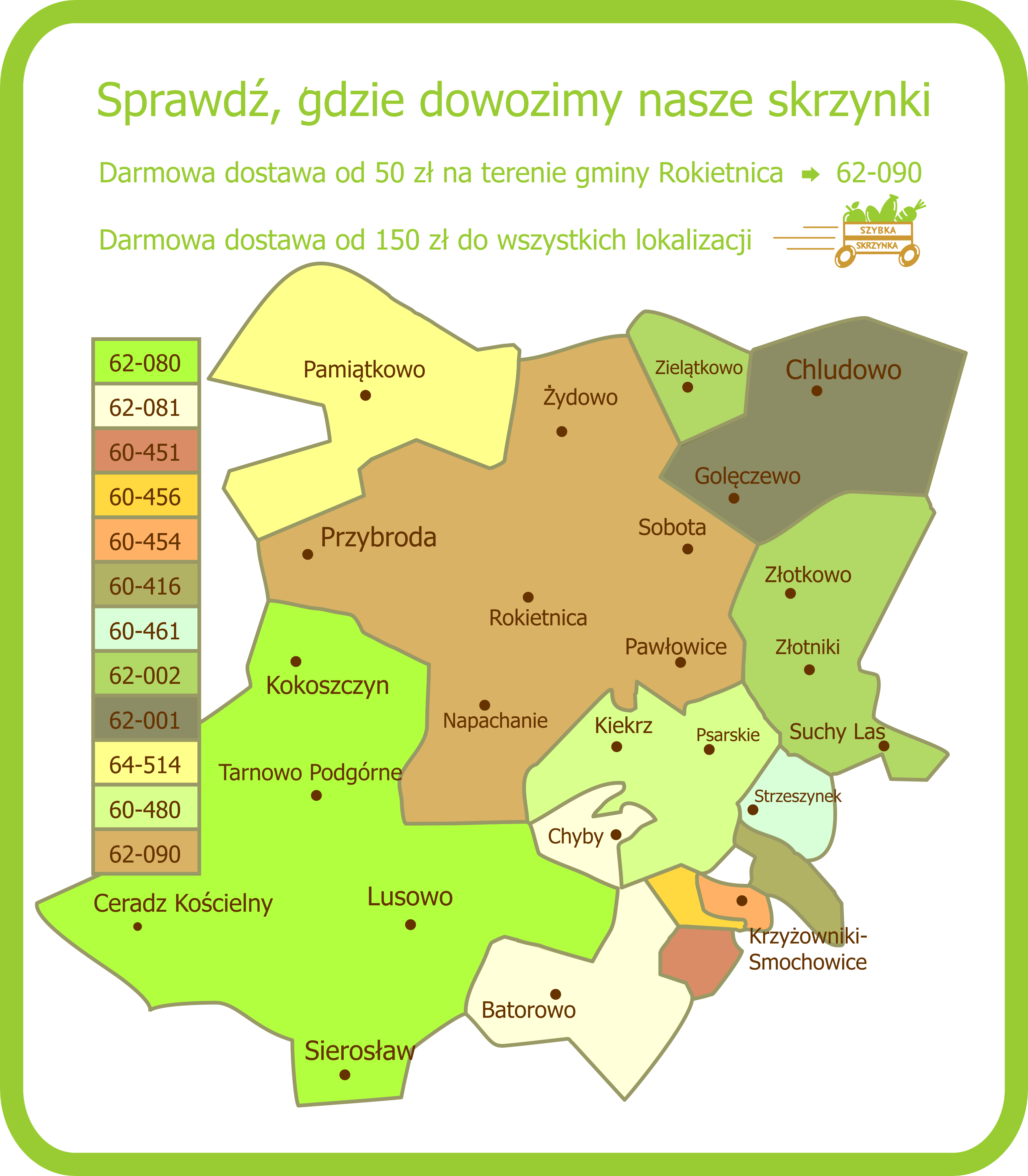 Wracasz zmęczony po pracy i nie masz ochoty stać w długich kolejkach po swoje zakupy? Nasza firma dostarczy Ci twoje ulubione przysmaki pod same drzwi. Zaoszczędź swój cenny czas i wybierz godzinę dostawy, która najbardziej Ci odpowiada. Nasze zamówienia realizujemy już od 50 zł. Wychodząc naprzeciw Państwa oczekiwaniom zorganizowaliśmy darmową wysyłkę na terenie gminy Rokietnica, a w przypadku pozostałych lokalizacji od 150 zł (do zamówień za niższą kwotę należy doliczyć 15zł ). Dostawę realizujemy własnym środkiem transportu z zachowaniem odpowiedniej temperatury i zasad bezpieczeństwa żywności. Dowóz realizujemy w półtoragodzinnych odstępach czasowych, w przedziale 15:00-20:00, ,a w soboty 6:00-14:00. Zamówienia złożone do godziny 19:00 będą realizowane już następnego dnia. Zmieniły Ci się plany i wiesz, że nie zdążysz odebrać zakupów? Nic nie szkodzi, poinformuj nas o tym telefonicznie i razem wybierzmy nową godzinę. Jeśli możesz, nie wyrzucaj swojej skrzynki, chętnie ją od Ciebie weźmiemy przy następnej okazji. Nie wiesz o której wrócisz do domu? Nie ma problemu! Dajemy państwu możliwość odbioru swojego zamówienia osobiście w siedzibie naszej firmy. Wystarczy podjechać autem pod bramę, przedzwonić na podany numer, poinformować, że jest się na miejscu i skrzynka trafia w państwa ręce.